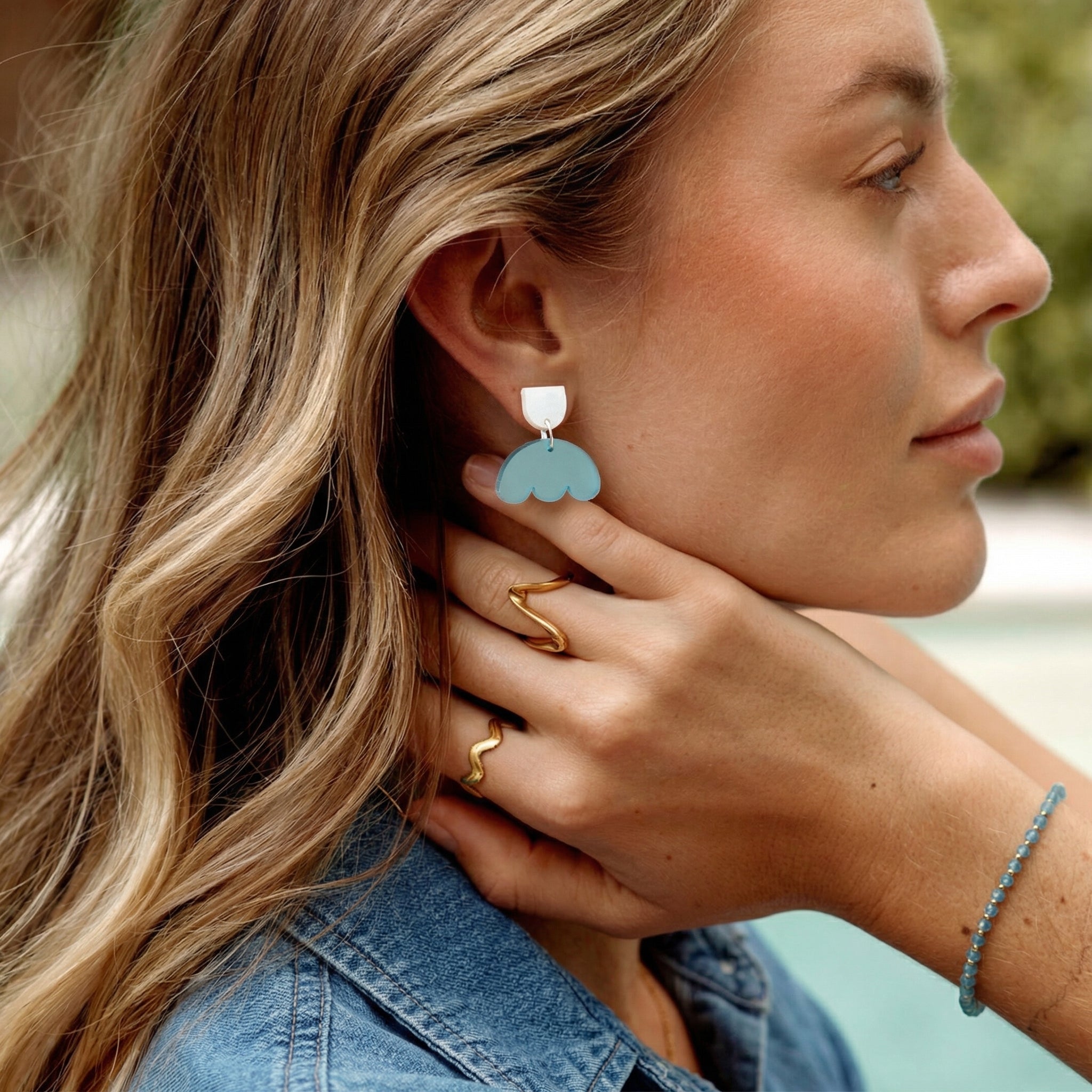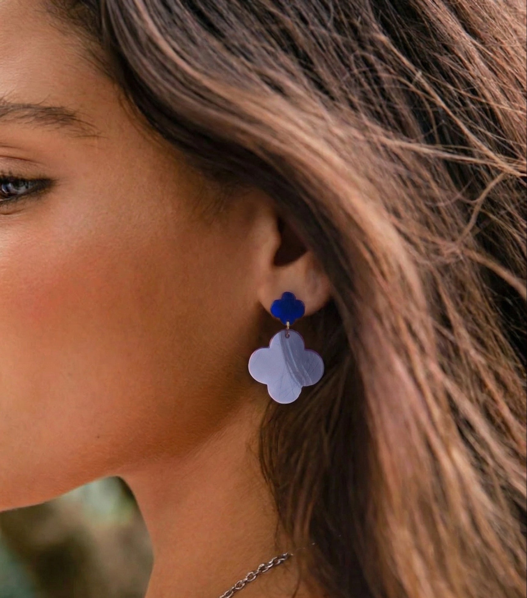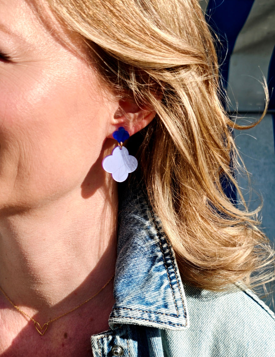 Die Himmelsklee-Ohrringe von ZIMI Jewelry verbinden die verspielt-symbolische Kraft des Kleeblatts mit einer Farbwelt, die an frischen Sommerhimmel und blühende Wiesenblumen erinnert.
