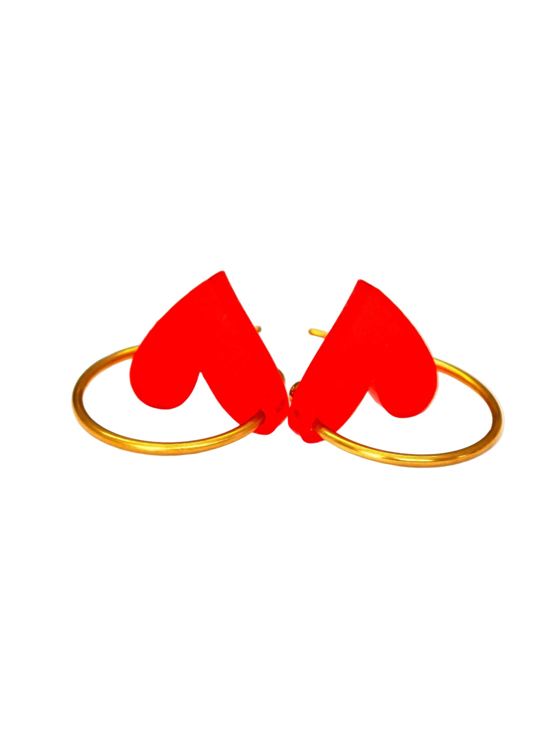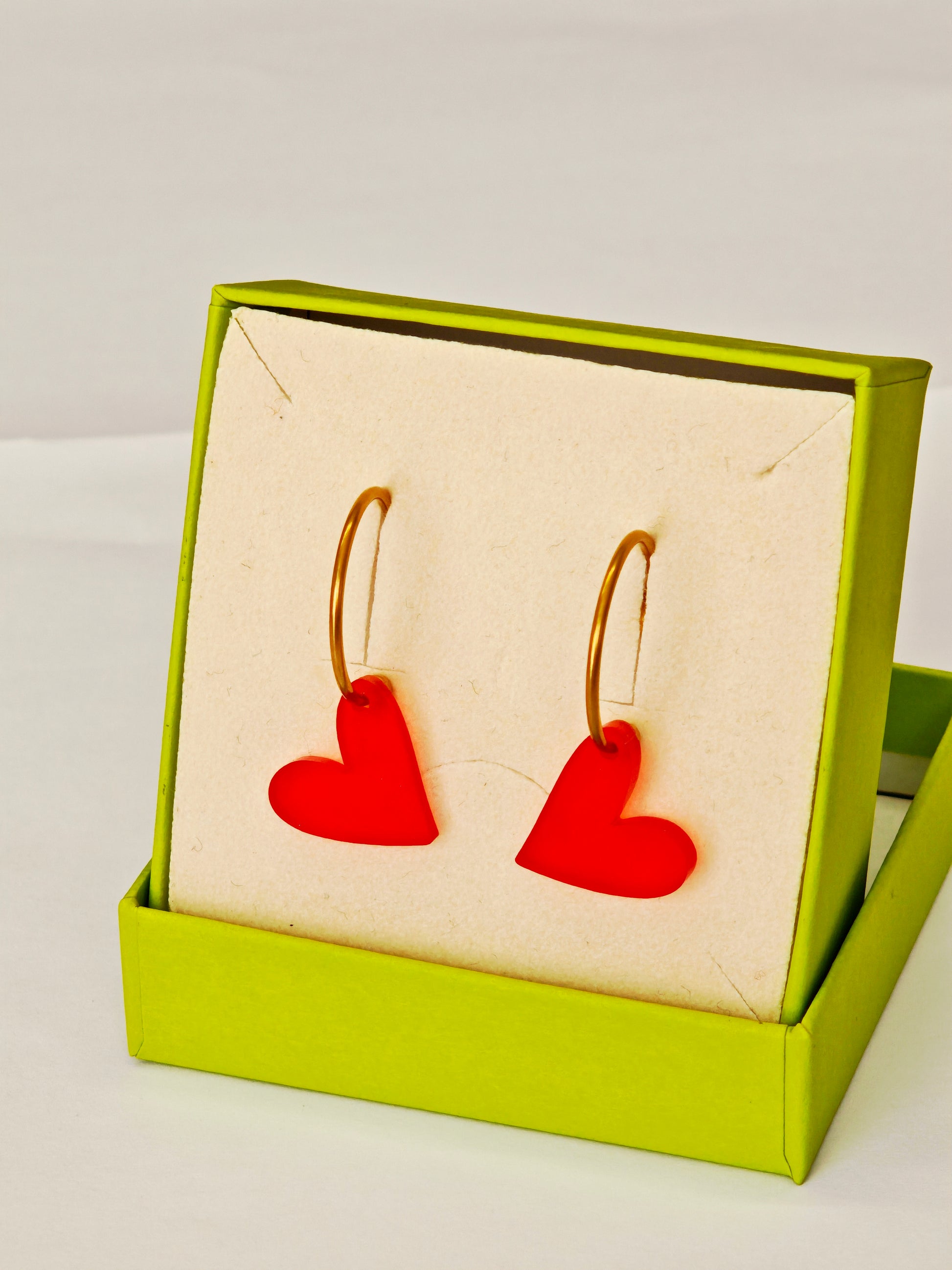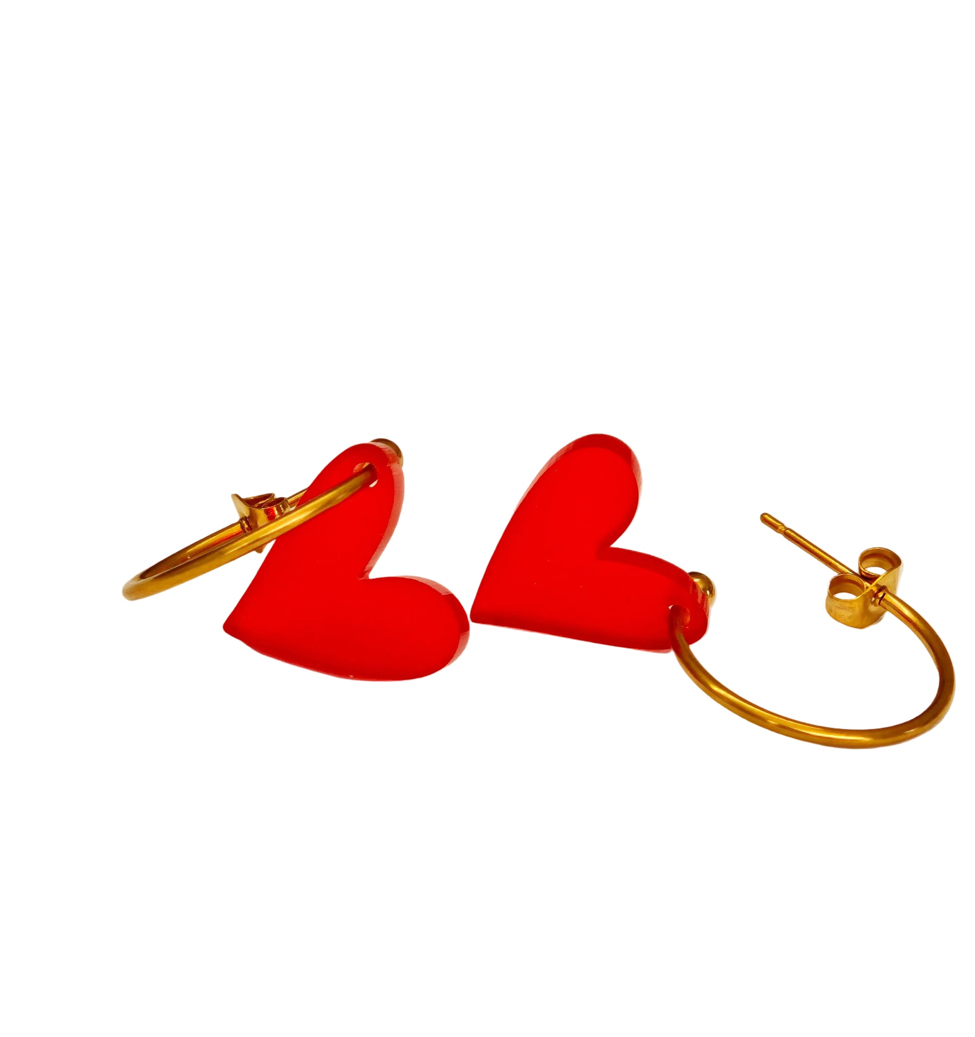 Design & MaterialFiligrane, goldfarbene Creole mit einem matten Herzanhänger in roten leichten Acryl-Herz – perfekt für langen Tragekomfort ohne Ziehen am Ohrläppchen.